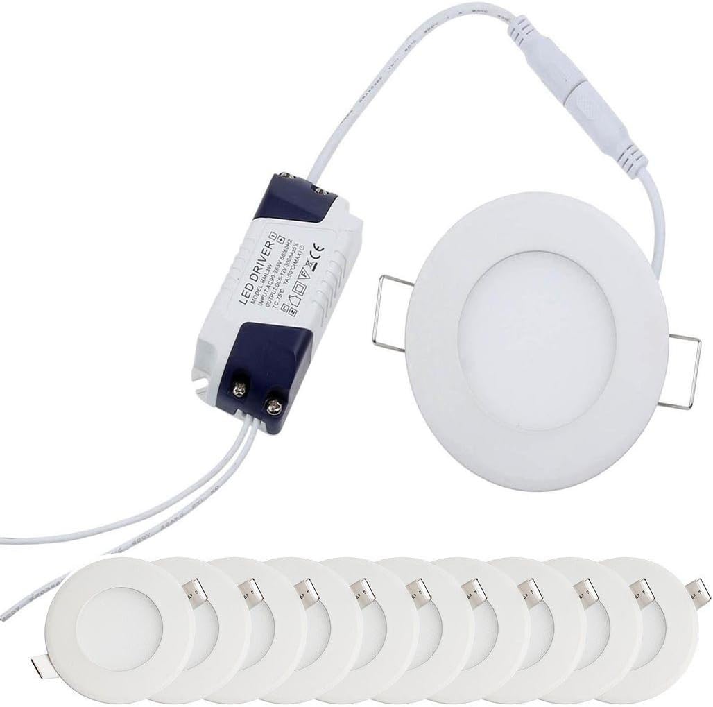 10 Stuck Miwooho 3w Ultraslim Slim Led Panel Rund Einbaustrahler Einbauleuchte Deckenstrahler Deckenleuchte Deckenlampe Einbau Lampe 225lumen Ac 85 265v Inkl Trafo 3w Kaltweiss Amazon De Beleuchtung
