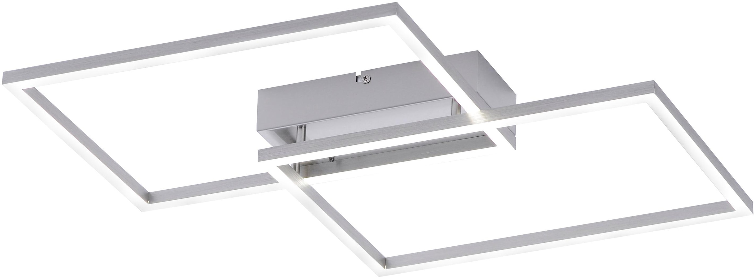 Sie setzt sich aus drei rechteckigen Rahmen zusammen die sich jeweils überlappen und übereinander in unterschiedlicher Ausrichtung montiert sind. Leuchten Direkt LED Deckenleuchte Iven.