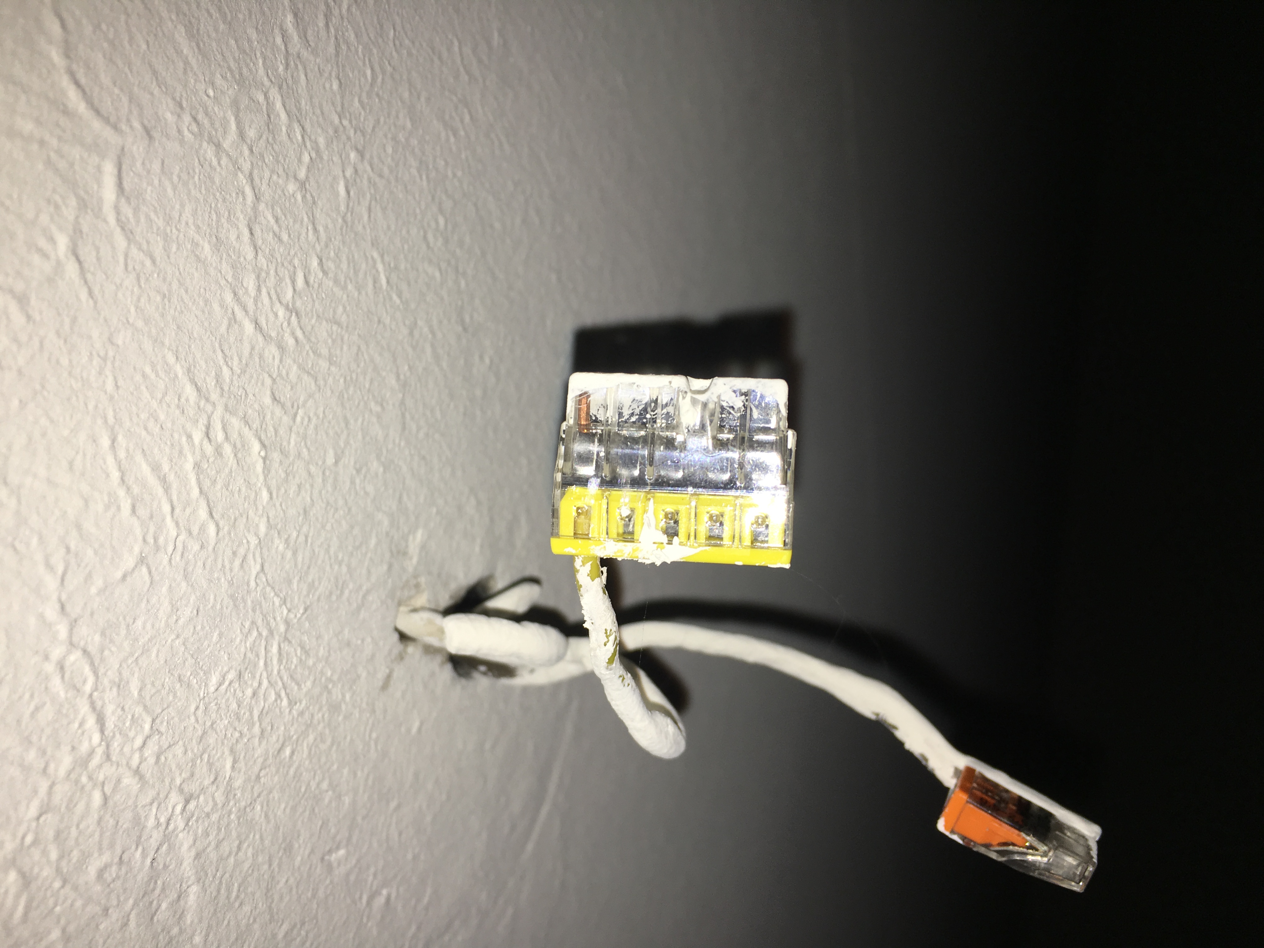 Wenn nötig ziehe hier auch nochmal die Schrauben an der Lüsterklemme die die Kabel der Decke mit den Lampenkabel verbindet fest. Dazu sind die Litzenkappen da. Die Farben kennzeichnen die jeweilige Funktion der Ader die auch als Leiter bezeichnet wird.