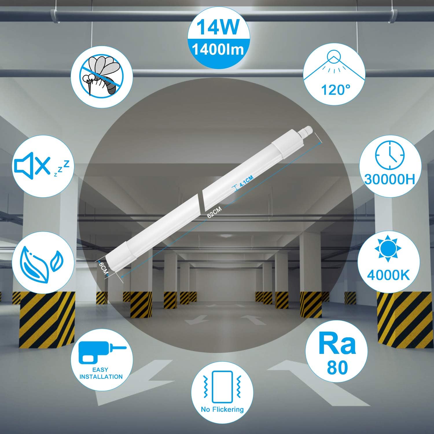 Ip65 Wasserdicht Led Rohre Licht 4000k Neutralweiss Deckenleuchten Fur Badezimmer Buro Supermarkt Fabrik Lager Korridor Krankenhaus Tiefgarage Usw Oraymin 14w 1400lm Led Feuchtraumleuchte 60cm