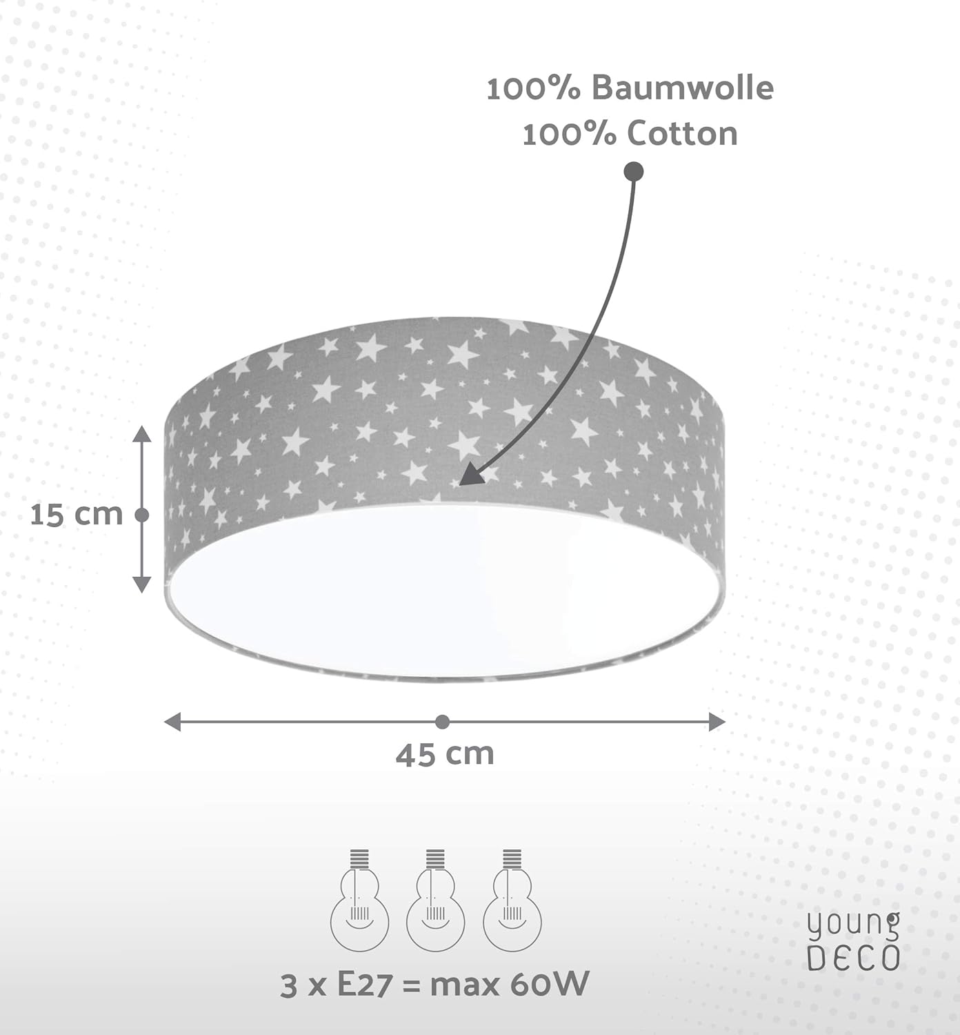 Sterne Auf Pastellgrau Skandinavische Kinderzimmer Deko Fur Madchen Junge Komplette Deckenleuchte Fur Kinderzimmer Grosser Lampenschirm 45x15cm 3xe27 Youngdeco Deckenlampe Fur Baby Und Kinderzimmer Beleuchtung Leuchten Fur Kinder Nappipaja Fi