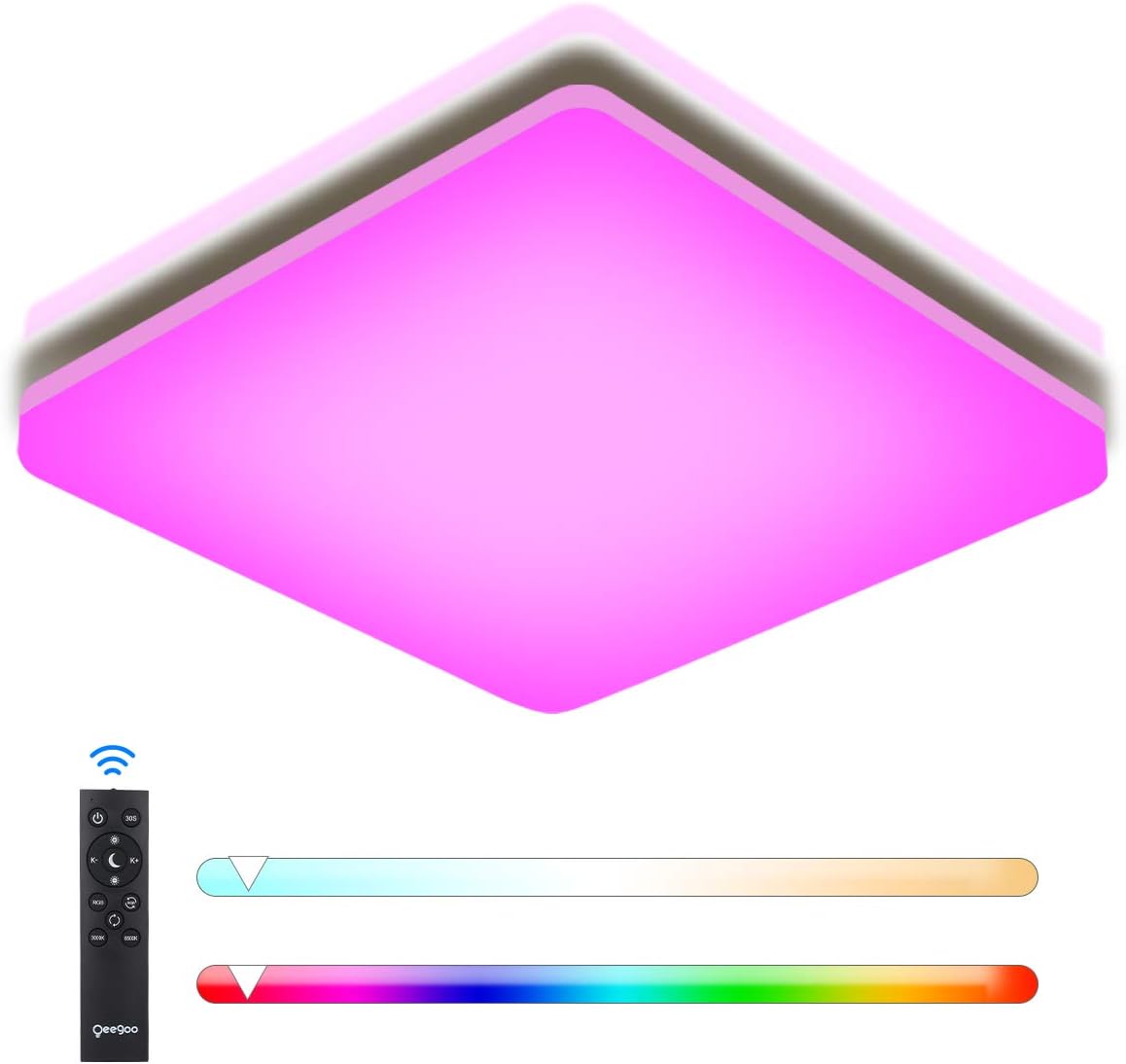 Oraymin Deckenlampe RGB Farbwechsel mit Fernbedienung 22W 2400LM LED Deckenleuchte Dimmbar 42cm Quadratisch Hintergrundbeleuchtung und 4000K Neutralweiß IP44 Wasserfest für Wohnzimmer Balkon. Hengda Deckenleuchte Led 36W RGB Farbwechsel Hengda Deckenleuchte Led 36W RGB Farbwechsel Deckenlampe dimmbar mit Fernbedienung Warmweiss-Kaltweiss 2700K-6500K Schlafzimmerlampe. 13490 14990.
