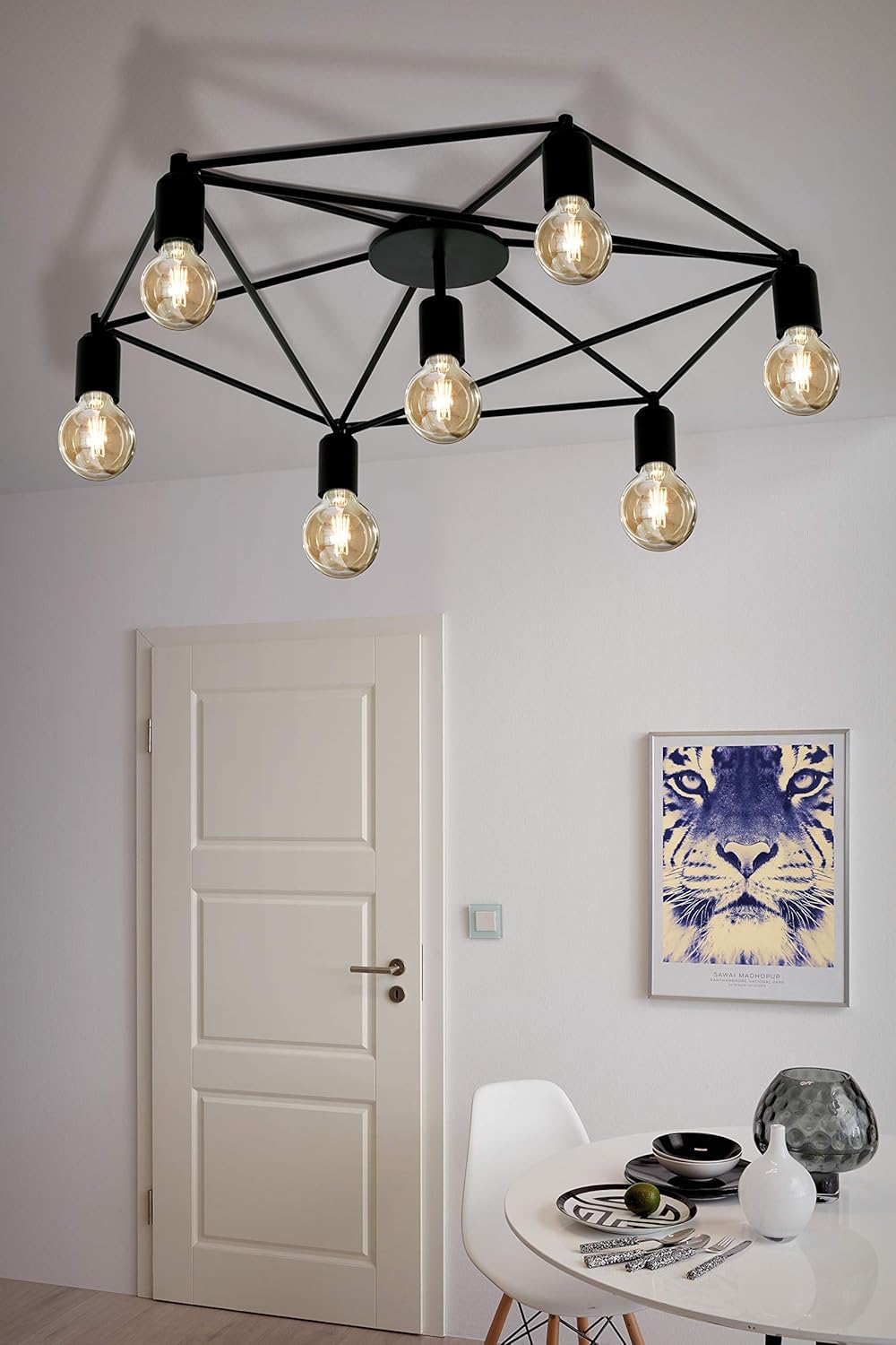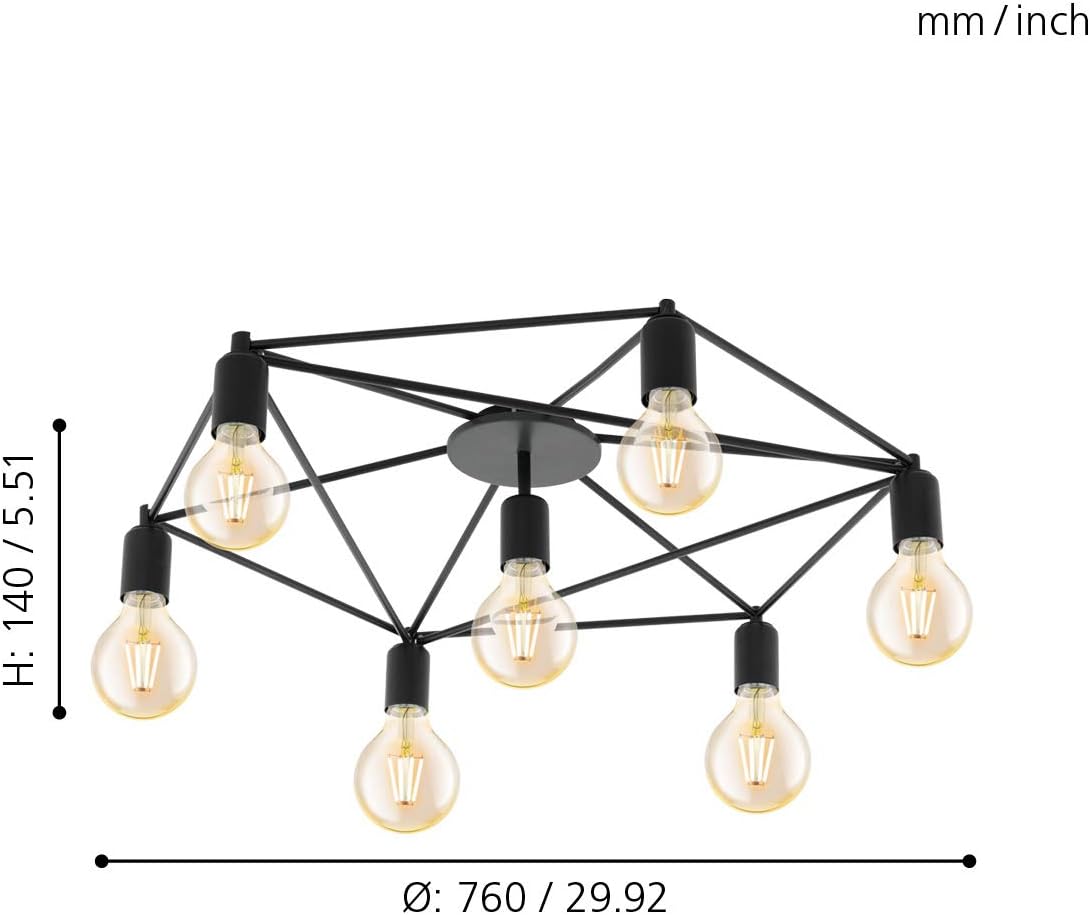 Eglo Staiti Ceiling Light 7 Bulb Ceiling Light Modern Minimalist Living Room Lamp Metal Bedroom Lamp In Black Hallway Lamp Ceiling With E27 Socket Diameter 76 Cm Amazon De Beleuchtung