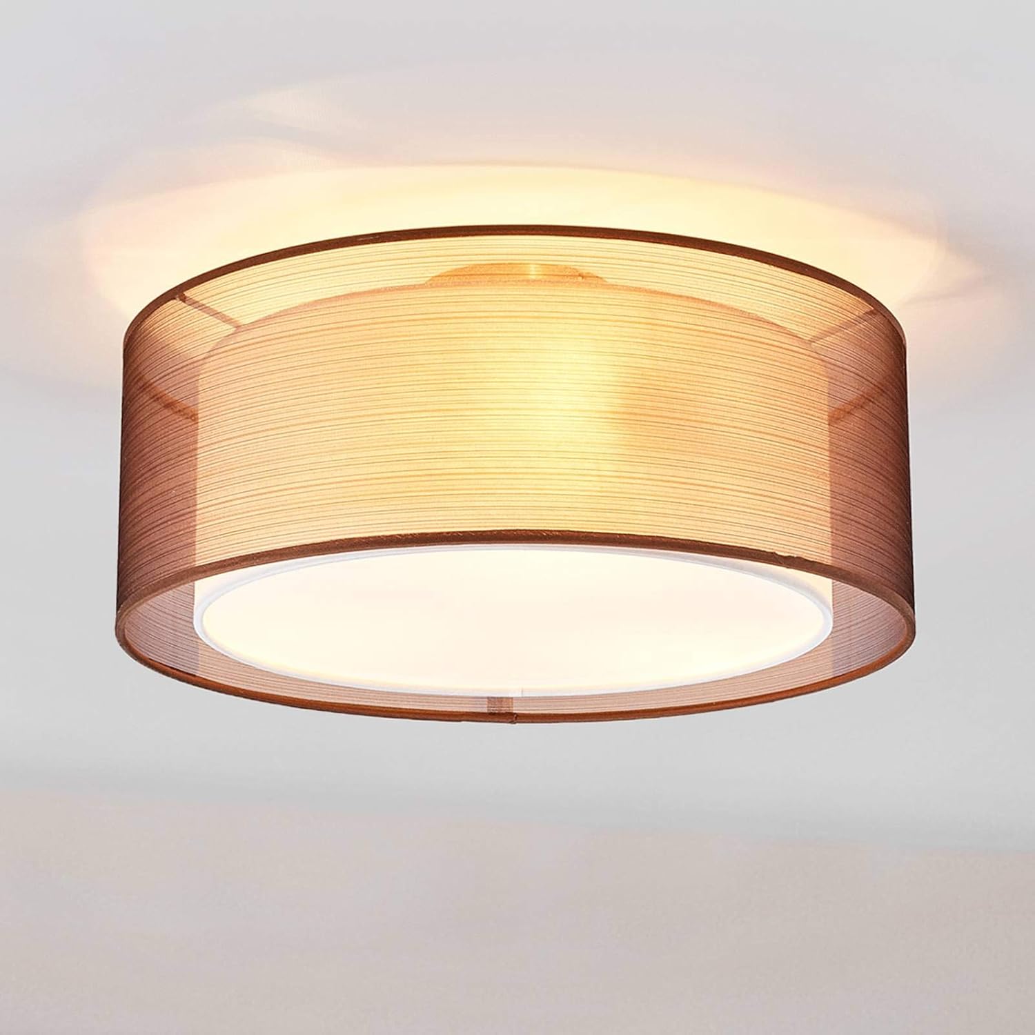Lindby Led Textil Deckenleuchte Rund 40 Cm Deckenlampe Stoff Braun 3xe27 Max 60w Ohne Leuchtmittel Led Deckenleuchte Stoff Wohnzimmerleuchte Amazon De Beleuchtung
